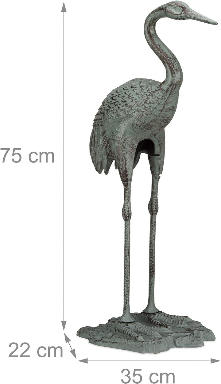 - Rustikale Gartendeko: Kranich Figur für Innen und Aussen - Masse H x B x T: ca. 75 x 35 x 22 cm