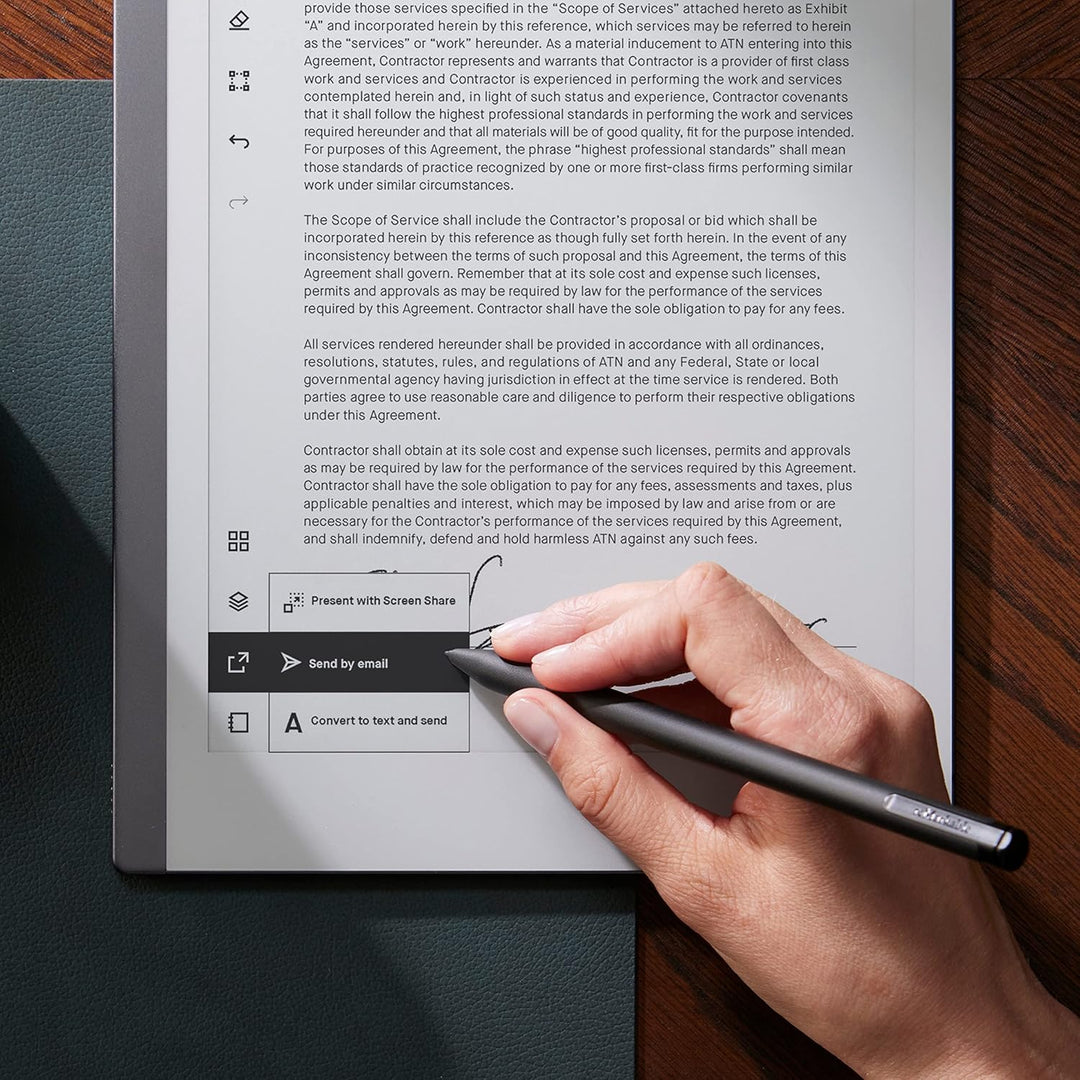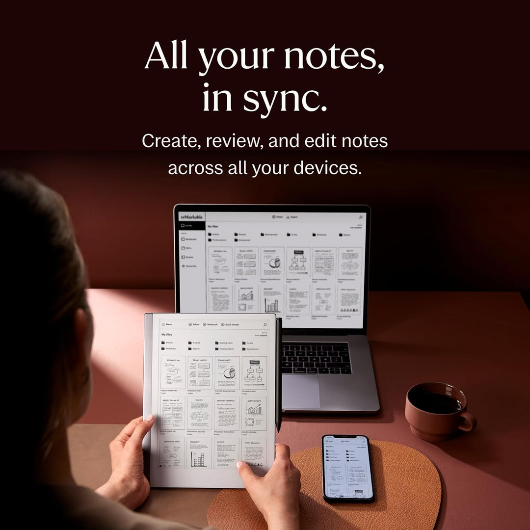 - Wo Sie aufgehört haben: Arbeiten Sie mit den reMarkable Apps über Ihre Smart-Geräte mit unbegrenztem Cloud-Speicher und Synchronisierung. Ihre Notizen werden sicher in der Cloud gespeichert und mit dem mitgelieferten 1-Jahres-Connect-Abonnement immer