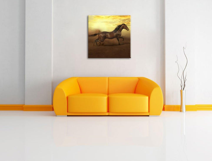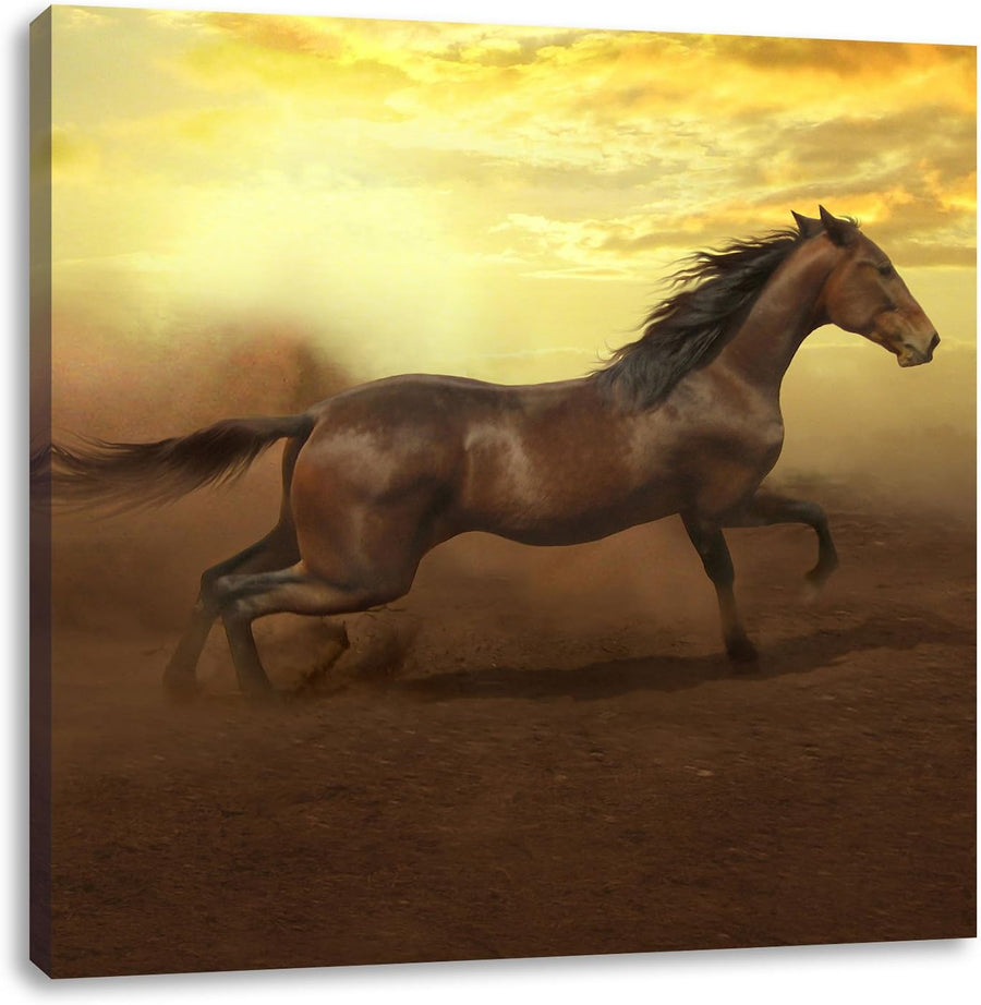 Rennendes Wildpferd, Format: 70x70 auf Leinwand, XXL riesige Bilder fertig gerahmt mit Keilrahmen, K