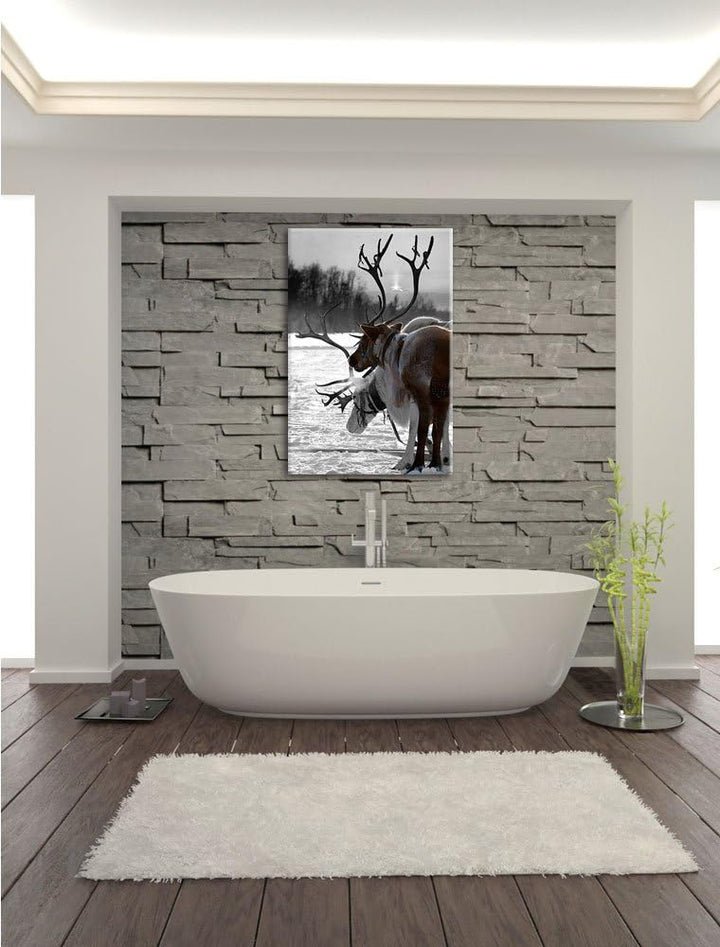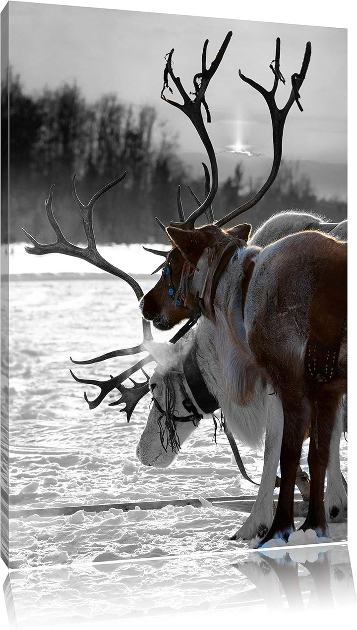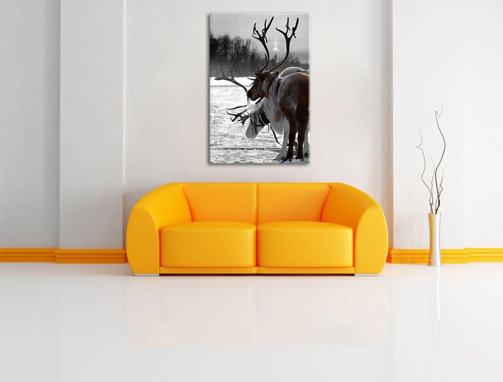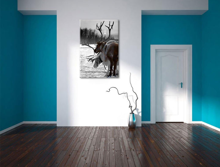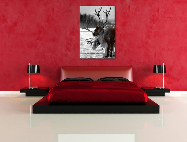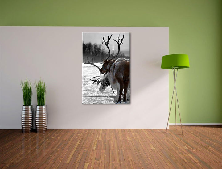 Rentiere im Schnee schwarz/weiss Format: 100x70 auf Leinwand, XXL riesige Bilder fertig gerahmt mit