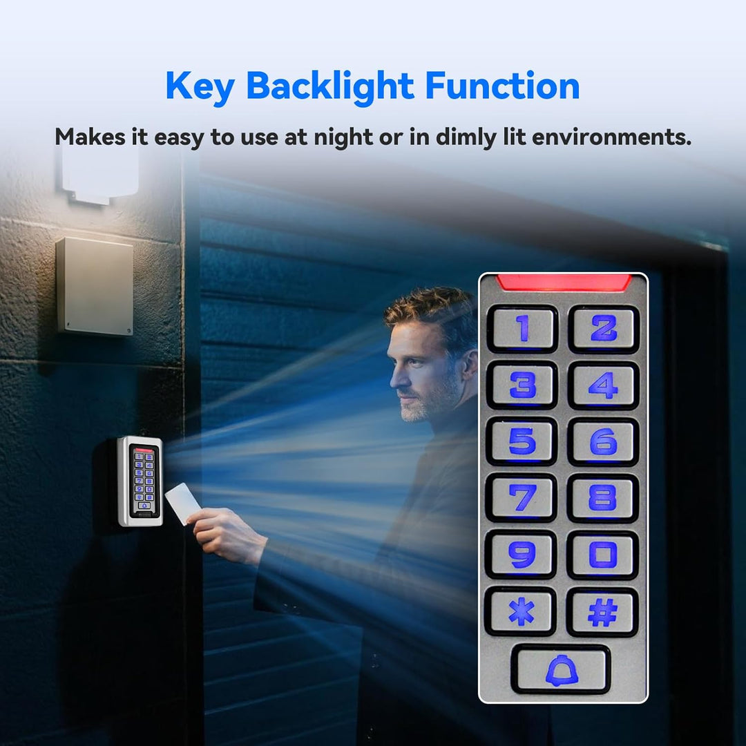 - Bitte beachten Sie; Für ein komplettes Zugangskontrollsystem; zusätzlich zur Steuertastatur; ist es auch erforderlich; [Netzteile]; [elektrische Lock] und [EXIT-Taste] zu erwerben; Wenn Sie die Tür mit der Karte öffnen möchten; müssen Sie auch die