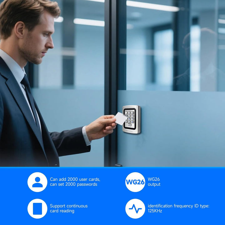 - Bitte beachten Sie; Für ein komplettes Zugangskontrollsystem; zusätzlich zur Steuertastatur; ist es auch erforderlich; [Netzteile]; [elektrische Lock] und [EXIT-Taste] zu erwerben; Wenn Sie die Tür mit der Karte öffnen möchten; müssen Sie auch die ID-Karte erwerben