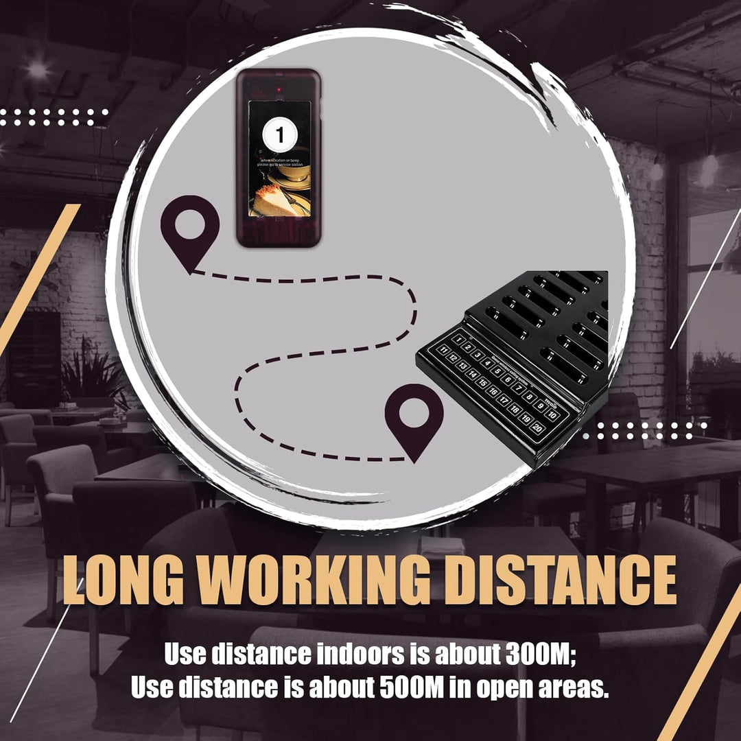 - Die Entfernung des Restaurantpagers im offenen Bereich kann bis zu 500 Meter betragen; Erlaubt Ihren Kunden; das Restaurant nach Belieben zu besuchen