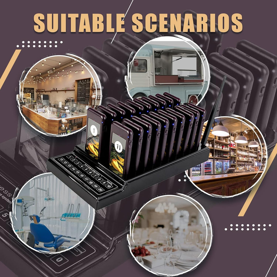 - Verwenden Sie den Restaurant-Pager T111 um Kunden an die Theke zu rufen; um Gerichte abzuholen; Kunden können an jedem beliebigen Ort warten; Der Kellner muss nicht schreien