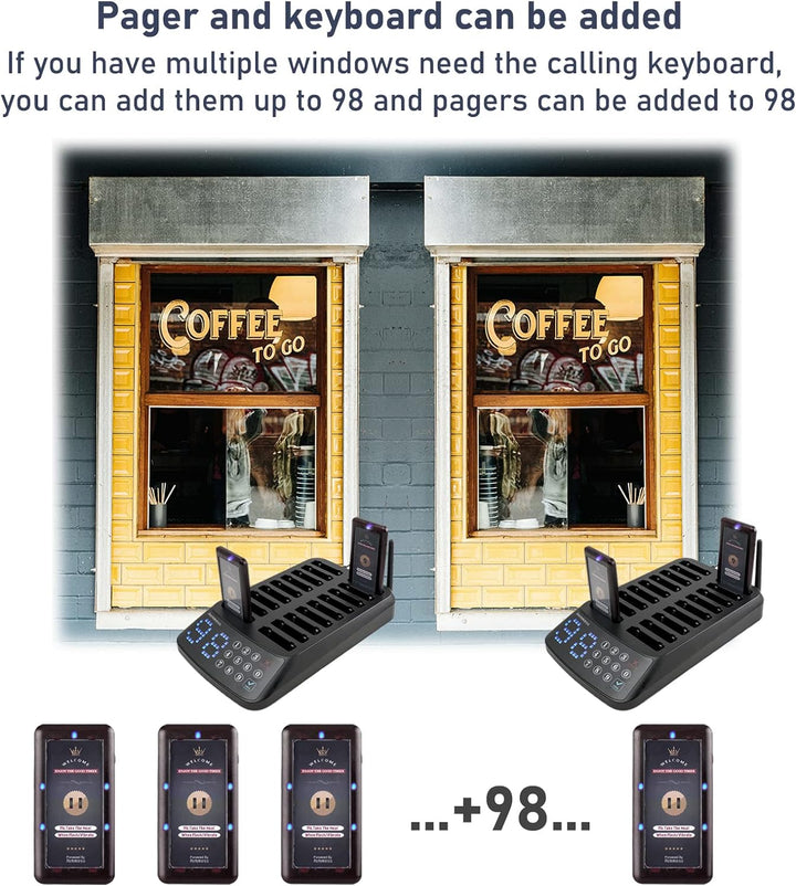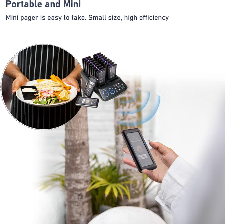 - Breite Signalabdeckung; Der Arbeitsabstand des Gastempfängers und der Steuertastatur beträgt ca. 100-200m; mit unserem komfortablen und zuverlässigen System; Sie können sich um jeden Kunden kümmern