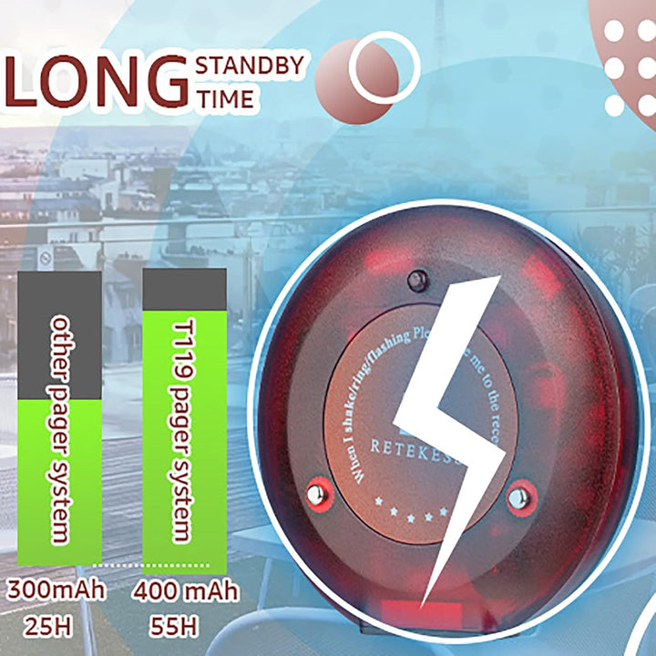- Support One Key Abschaltung; Entfernen Sie alle Pager von der Ladestation; Drücken Sie die Nummer 9; bis Sie einen Piepton hören; Drücken Sie dann die EINGABETASTE; um alle Pager zu deaktivieren; mehr Zeit und Stromersparnis