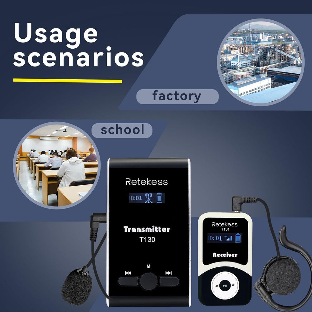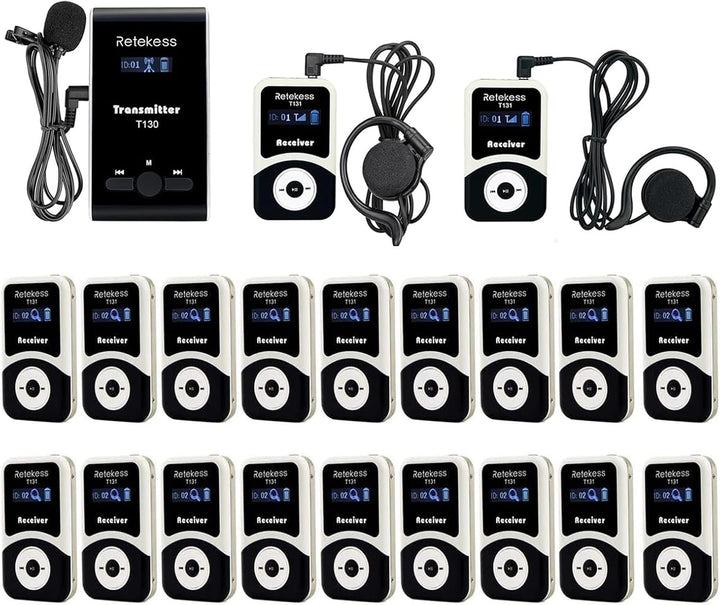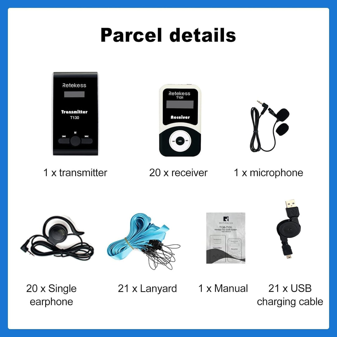 - Das drahtlose Tourguide-System verfügt über 99 IDs; So können bis zu 99 Gruppen gleichzeitig im selben Raum arbeite
