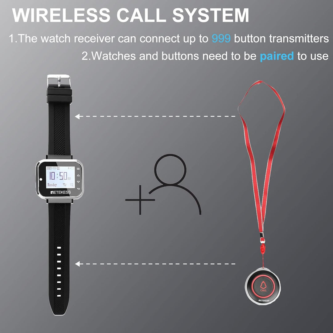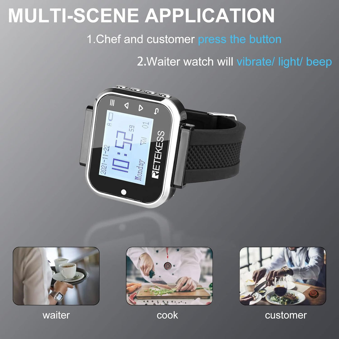 - Bis zu 999 Empfänger erweiterbar; Uhrenpager passen zu allen Retekess-Empfängern; geeignet für Restaurants/Hotels/Kneipen/Krankenhaus