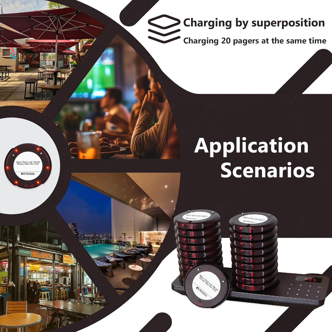 - 20 Pager und doppelte Ladestation; Laden Sie gleichzeitig 20 Pager in einer Minitastatur auf; erleichtert den Ausbau des Geschäfts