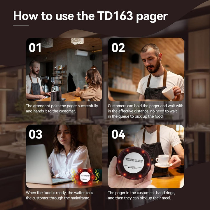 - Das Pager-System ist einfach zu bedienen; Das Personal ruft über die Tastatur an und der Kunde empfängt den Pager aus der Ferne
