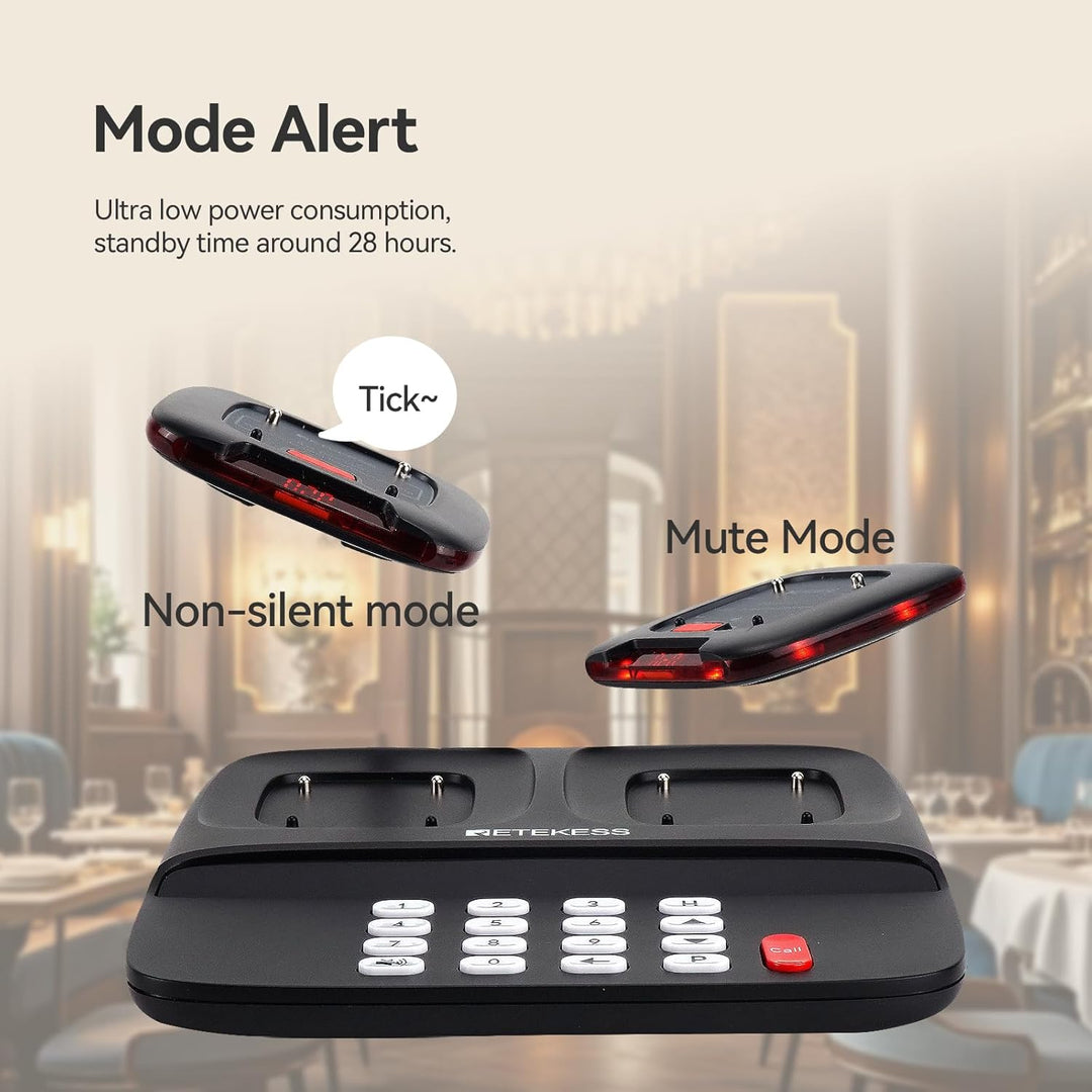 - Der Restaurant-Pager TD183 hat ein neuartiges Aussehen; mit LCD-Display; klarerer Betrieb; Die Sendertaste fühlt sich angenehmer an; einstellbare Stummschaltung oder Aufforderungston