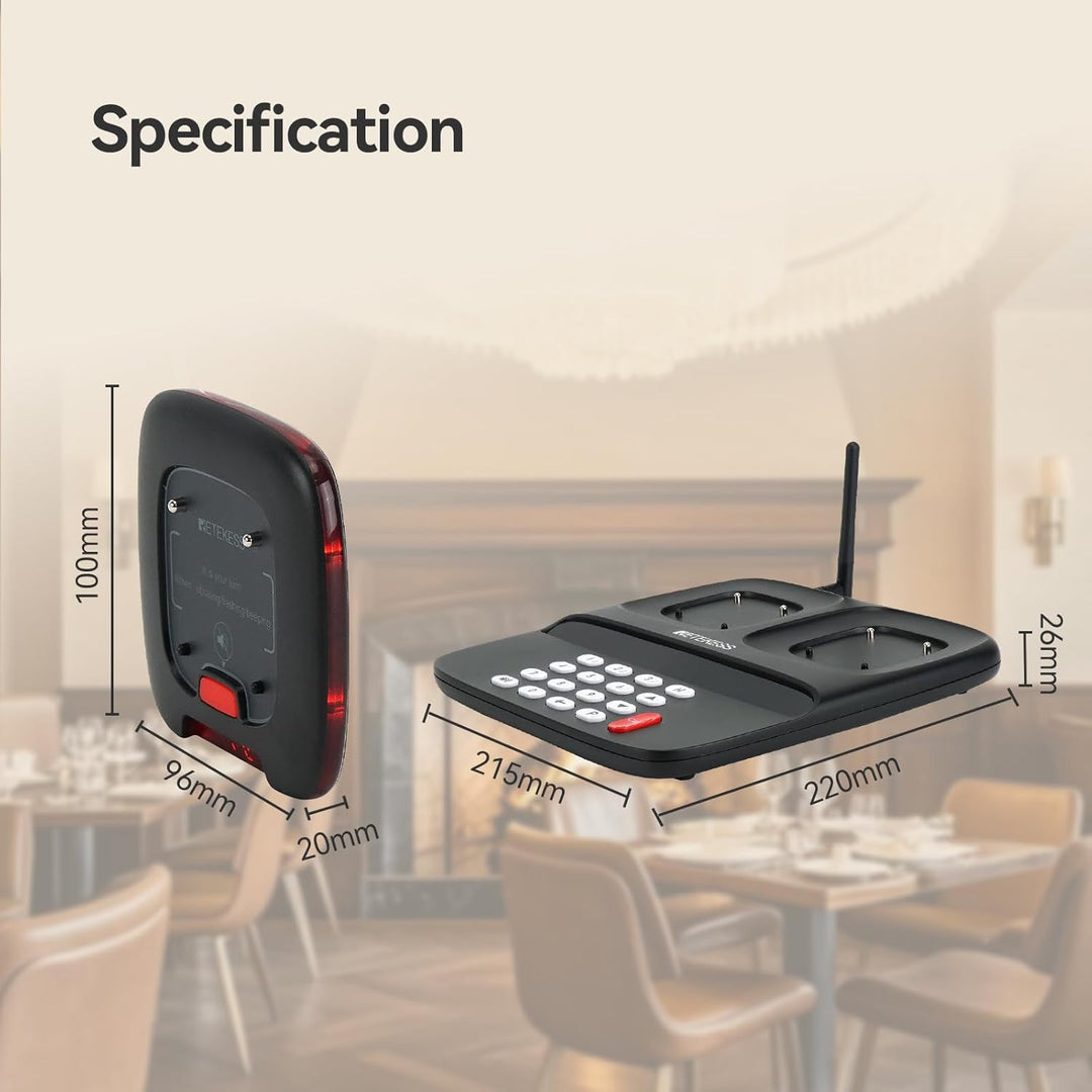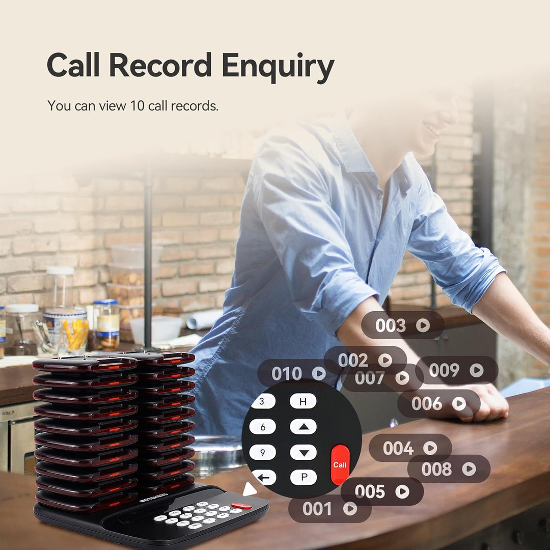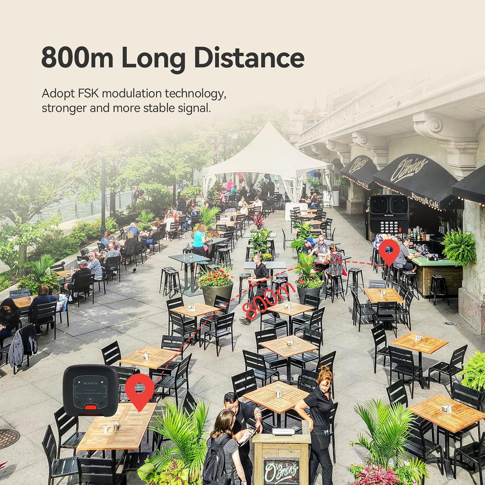- Das drahtlose Paging-System verwendet die FSK-Modulationstechnologie mit längerer Übertragungsdistanz und stärkerer Entstörung; Der stabile Arbeitsabstand beträgt 800 m; geeignet für Restaurants Krankenhäuser Logistik usw