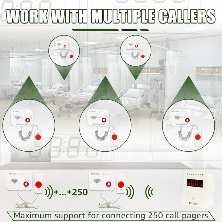 - Mehrere Pager werden zusammen verwendet; ein Empfänger unterstützt maximal 250 Pager; Mehrere Pager können an der Bettwand verschiedener Stationen installiert werden