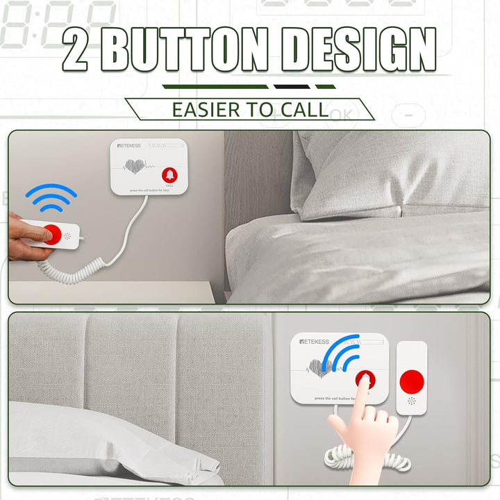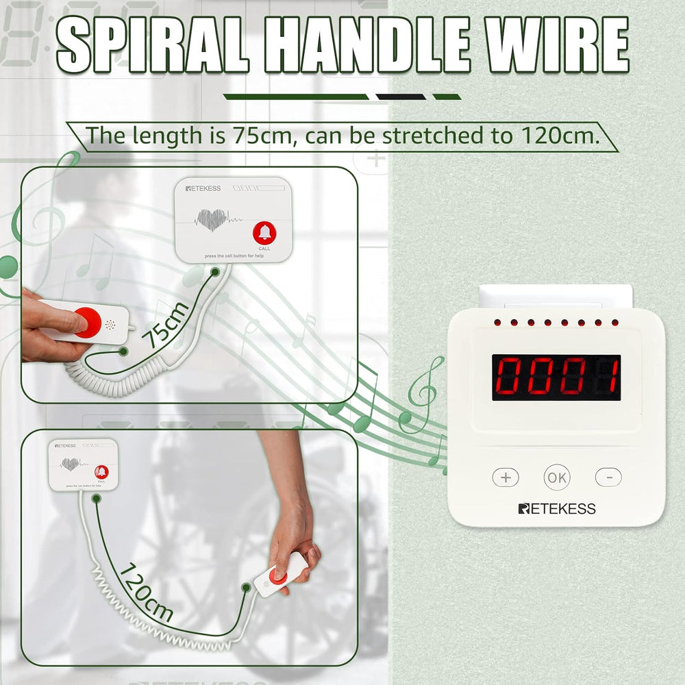 - Design mit zwei Tasten; Der Pfleger-Pager verfügt über eine RUF-Taste am Griff und ein quadratisches Bedienfeld; einfach anzurufen; Die Länge des SOS-Rufknopfgriffs beträgt 75 bis 120 cm