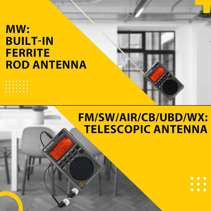 - Tragbares Vollbandradio; MW FM SW CB UBD; Wetterband mit Alarm; Flugband für Benutzer die häufig mit dem Flugzeug fliegen; Multiband-Radio mit SSB; Ein Seitenband ist effizient um Informationen über grosse Entfernungen zu erhalten