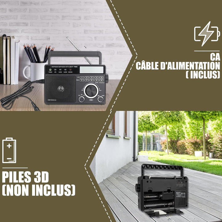 - Tragbares Radio mit zwei Netzteilen; Mit dem AC-Ladekabel (im Lieferumfang enthalten) können Sie Radio im Inneren hören; 3D-Akku (nicht im Lieferumfang enthalten) um das Kurzwellenradio jederzeit und überall abzuspielen; Geeignet für