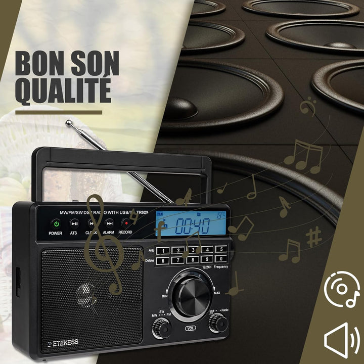 - Radiorecorder; TR629 Tragbares Radio zum Aufzeichnen Ihrer Lieblingsradiosendungen oder Talkshows oder Sportkommentare auf USB; vermeidet Neuigkeiten oder Ereignisse zu verpassen; Spielen Sie aufgezeichnete Sender jederzeit und nach Belieben ab