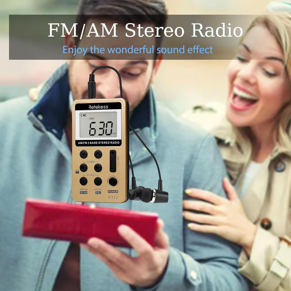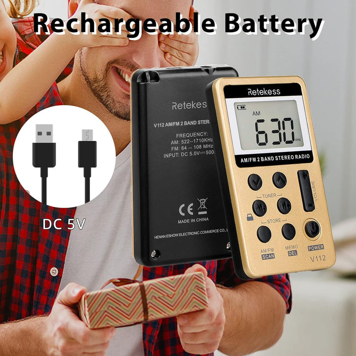 Retekess V112 Mini Radio Batteriebetrieben,Radio Klein mit Kopfhörer,FM AM,Schlaftimer,Wiederaufladb