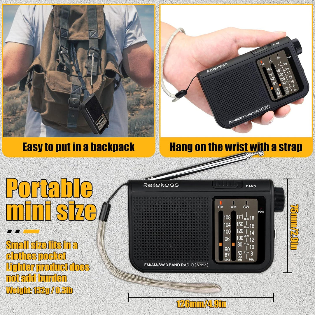 - Produktabmessungen des Taschenradios: 12,6 cm L x 7,5 B x 2,6 H;Es ist sehr bequem zu tragen