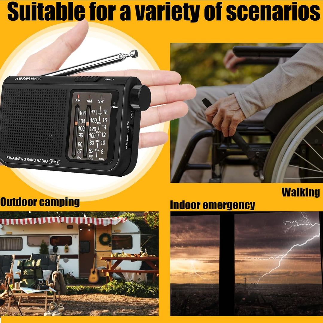 - Der AM/FM/SW-3-Band-Frequenzempfänger akzeptiert mehr Sender; Hervorragender Empfang; da die starke Signalempfangsfunktion problemlos Musik; Nachrichten und andere Radiosender hören kann; unabhängig von Land; Region oder Umgebung