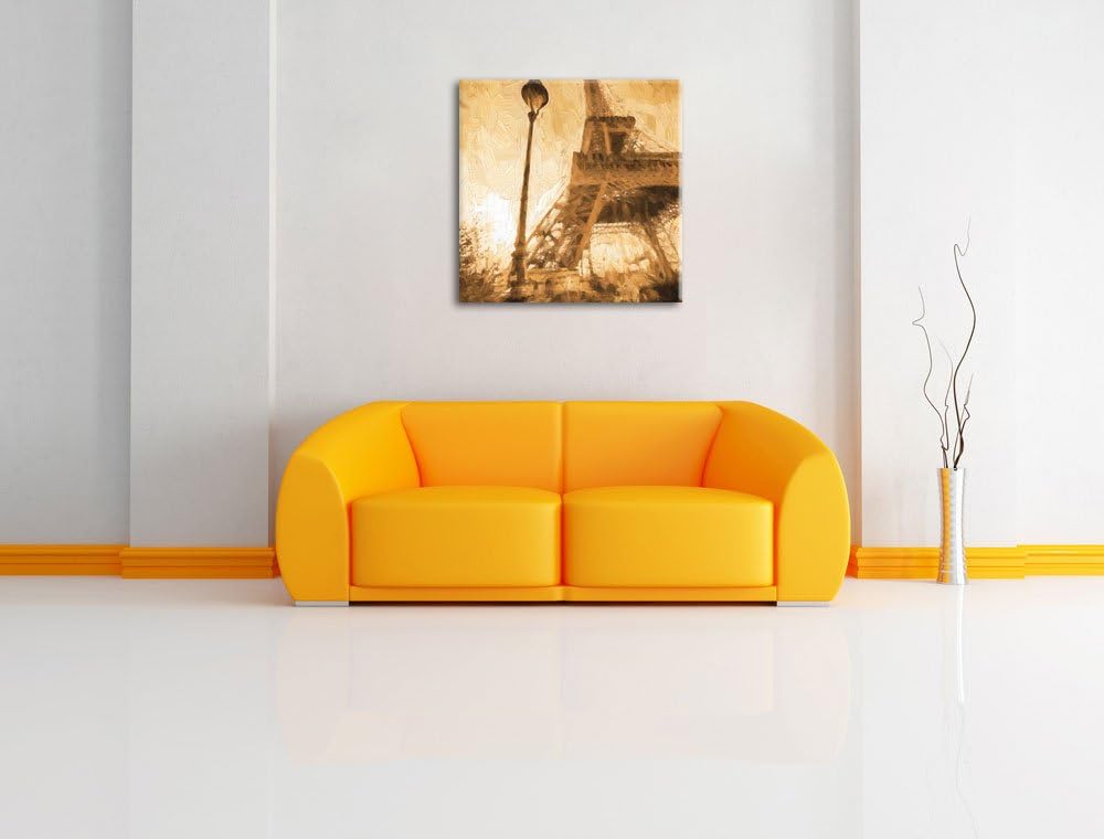 Retro Eifelturm in Paris, Format: 70x70 auf Leinwand, XXL riesige Bilder fertig gerahmt mit Keilrahm