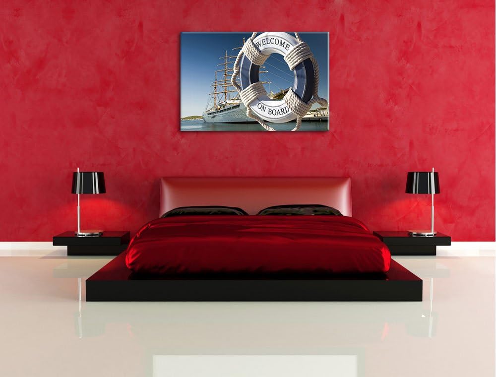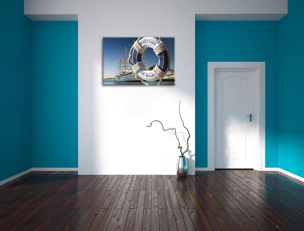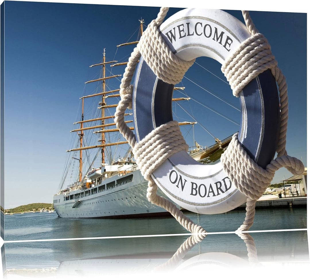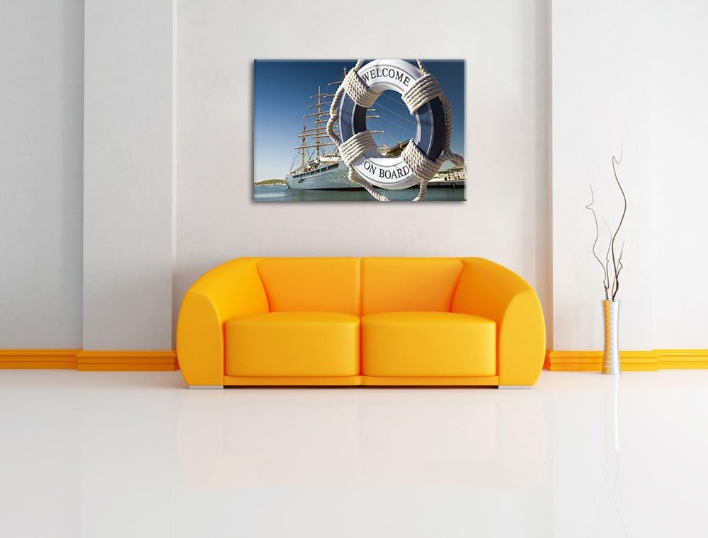 Rettungsring vor Schiff Format: 100x70 auf Leinwand, XXL riesige Bilder fertig gerahmt mit Keilrahme