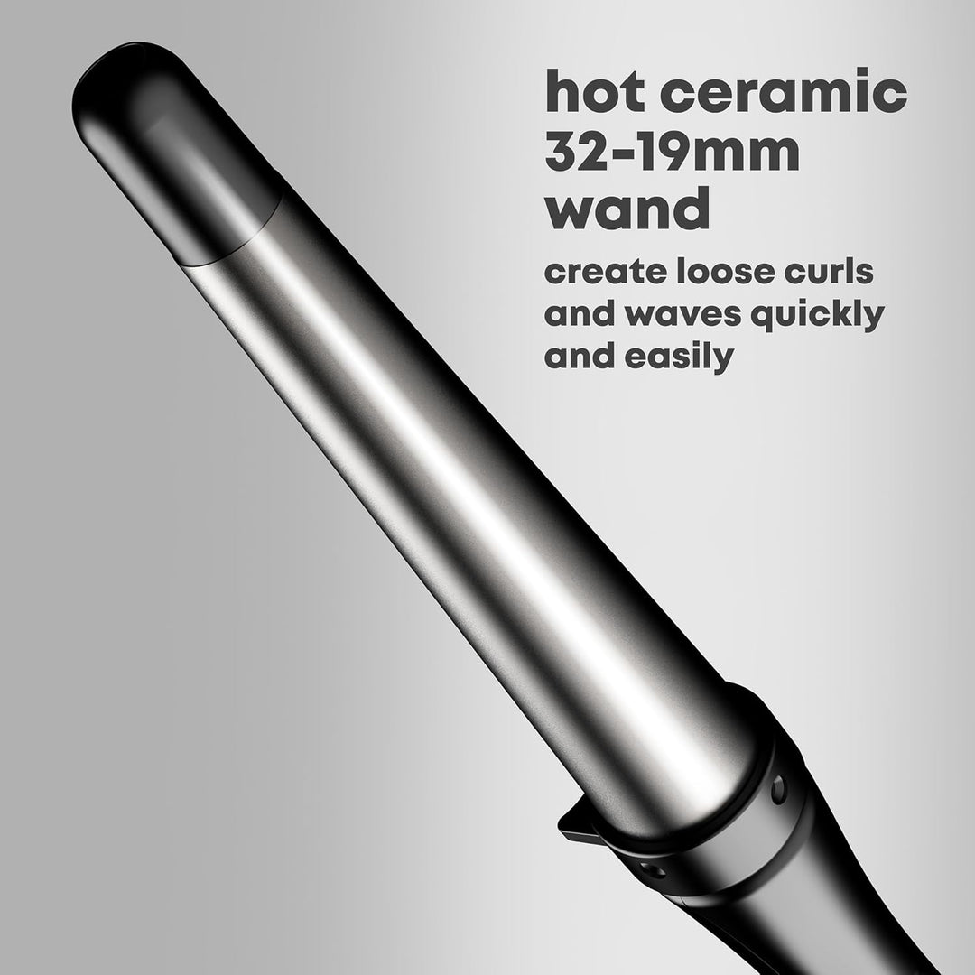 • SPRINGENDE LOCKEN & WELLEN: Mit ihrem 32-19mm konischen Keramikzylinder können Sie kreativ sein und Ihren gewünschten Haarstyle erzielen. Ganz gleich, ob Sie kleine, verspielte Locken, locker fliessende Wellen oder schwungvolle Locken haben möchten,