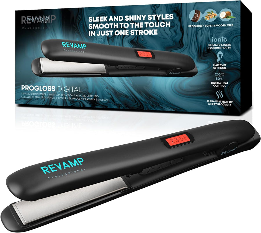 - PROGLOSS GLÄTTENDE ÖLE: Die keramischen Ionenplatten des Progloss Digital Keramik Glätteisens sind mit Keratin-, Argan- und Kokosnussöl angereichert, um ein vielseitiges Styling mit ultimativem Glanz wie im Salon zu ermöglichen