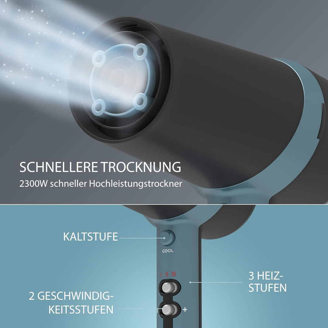 - MEHR VOLUMEN: Dieser Haarfön wird mit 1 Glättungsdüse für elegante Styles und 1 voluminösen Diffusor für Locken geliefert, der mit Hilfe des Quad-Ionisators jeder Frisur maximales Volumen verleiht
