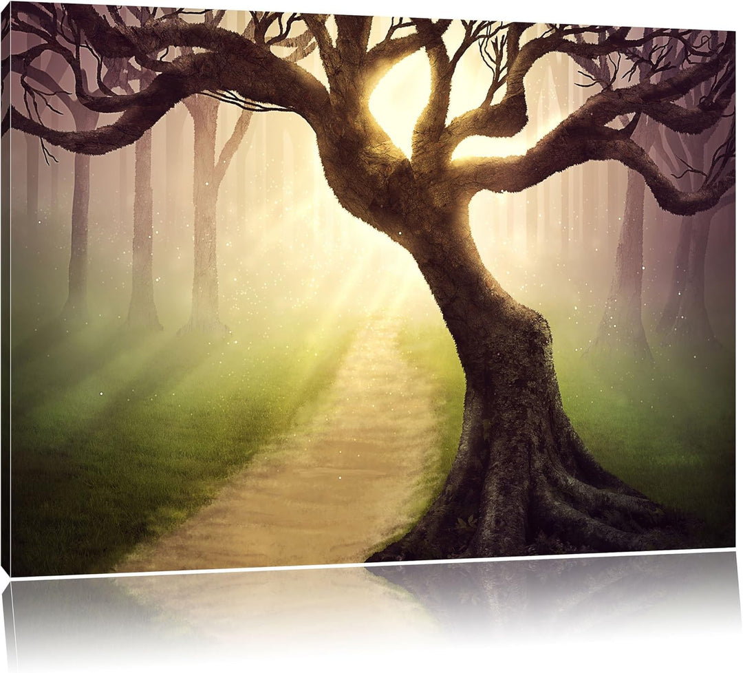 Riesiger Baum am Waldweg, Format: 100x70 auf Leinwand, XXL riesige Bilder fertig gerahmt mit Keilrah
