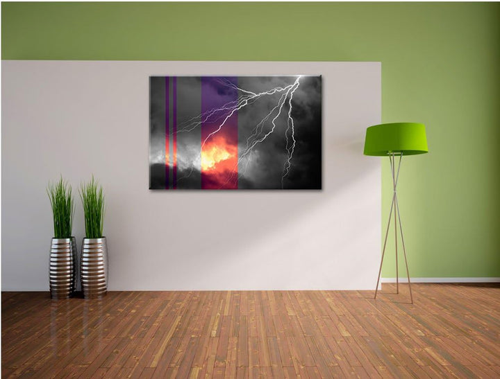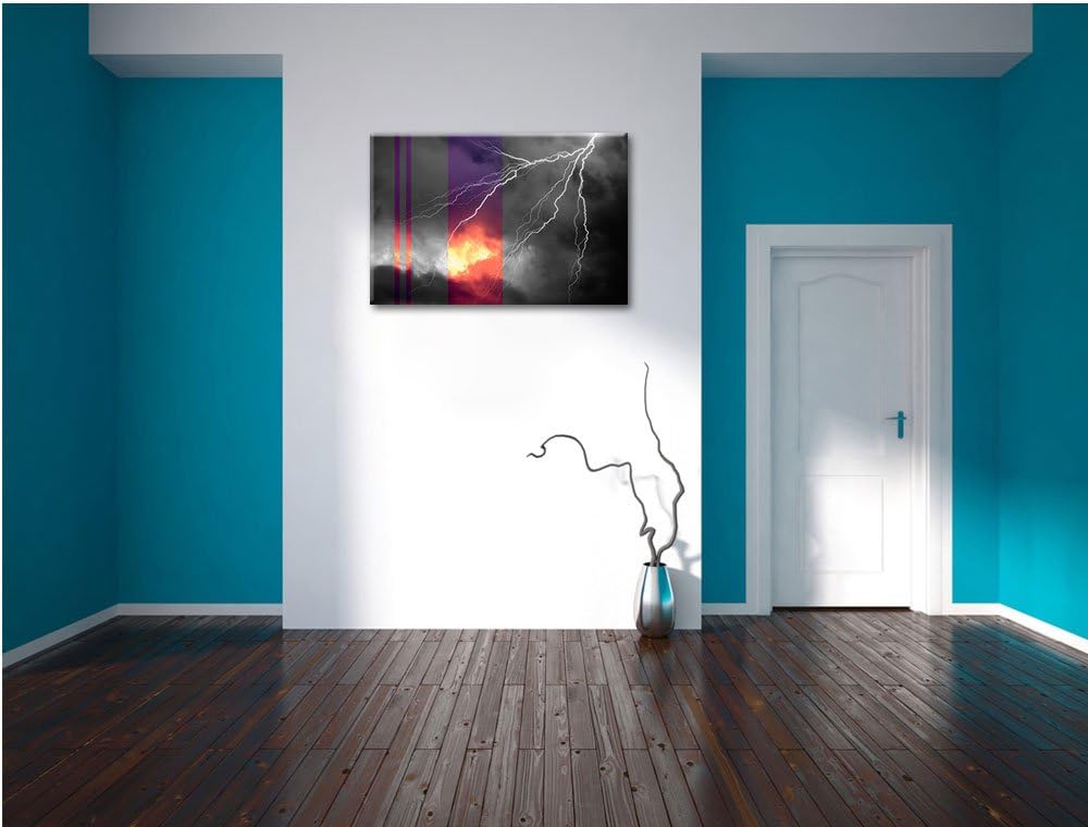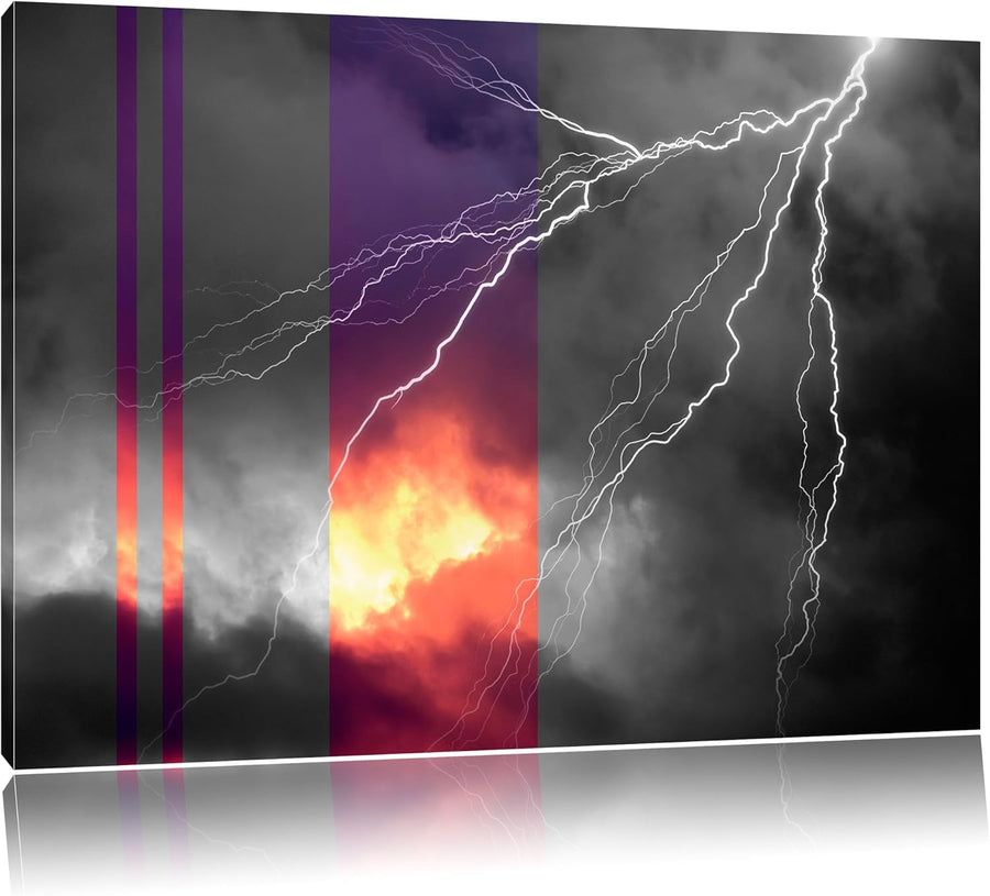 riesiger Blitz am Gewitterhimmel schwarz/weiss Format: 100x70 auf Leinwand, XXL riesige Bilder ferti