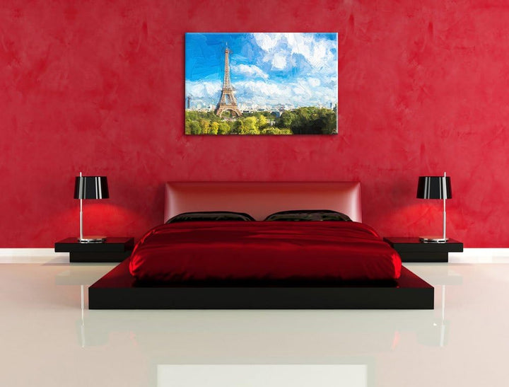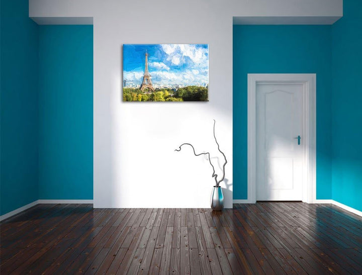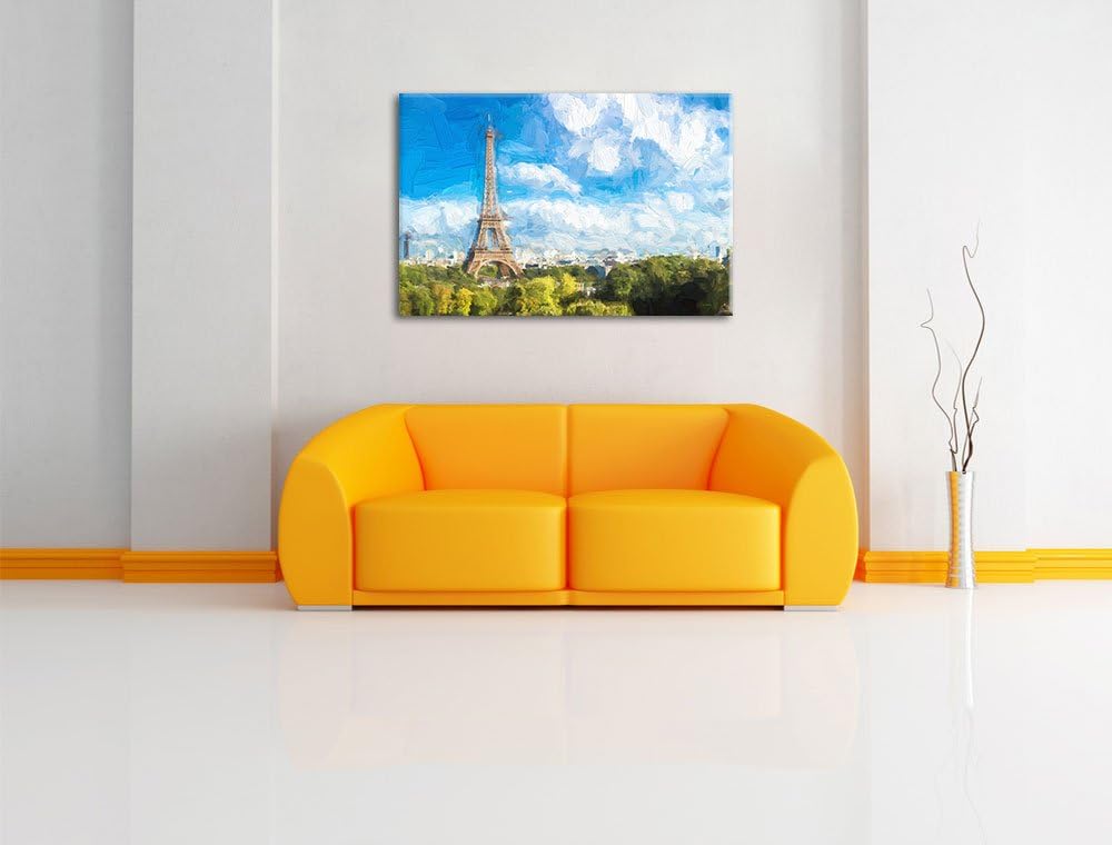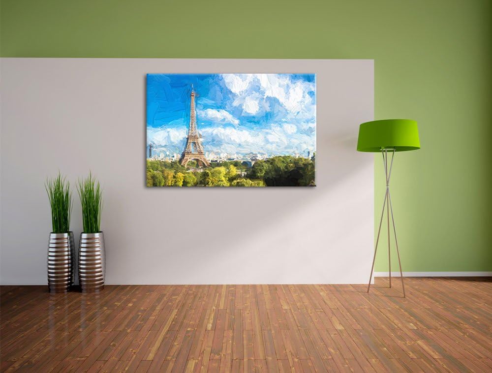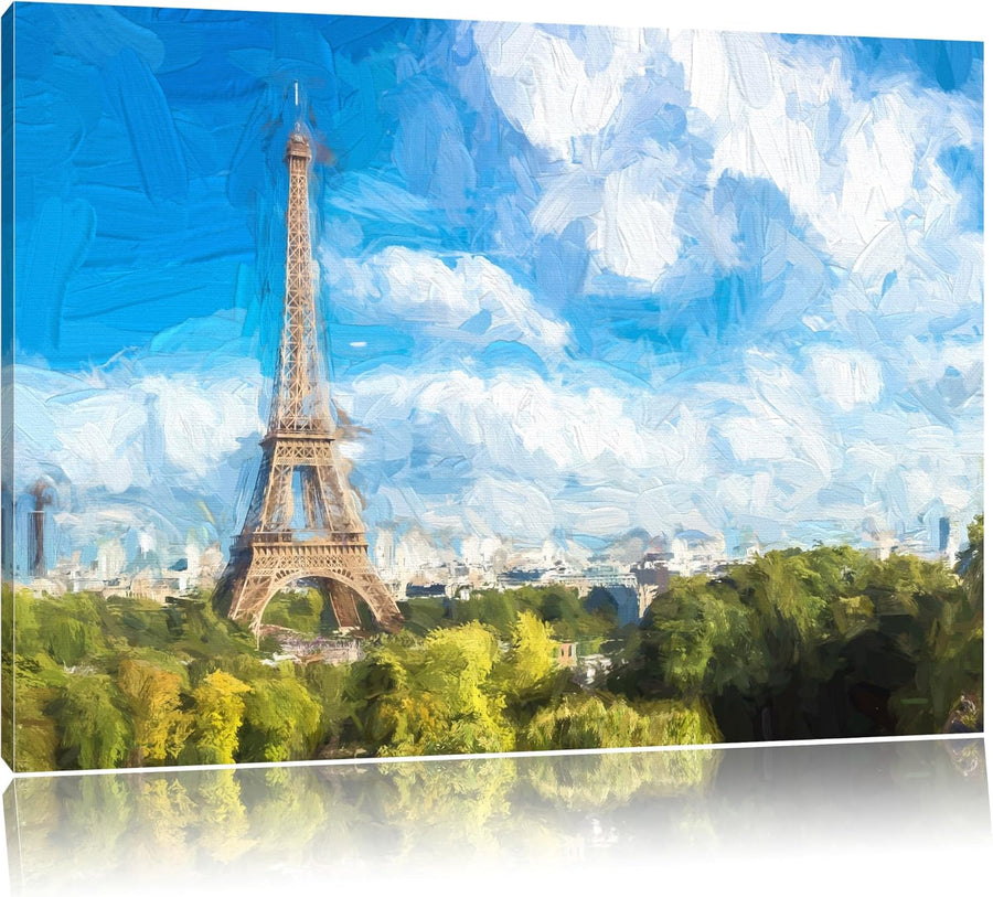 Riesiger Eiffelturm in Paris Pinsel Effekt, Format: 100x70 auf Leinwand, XXL riesige Bilder fertig g