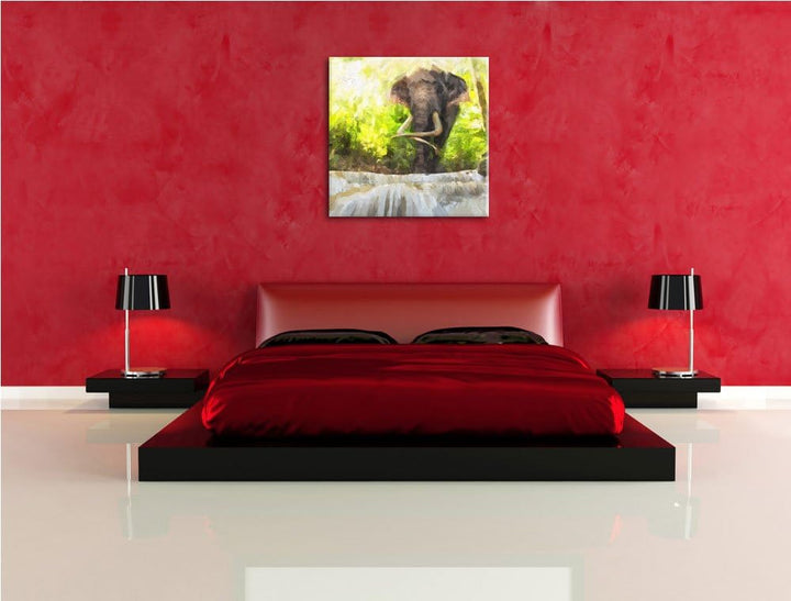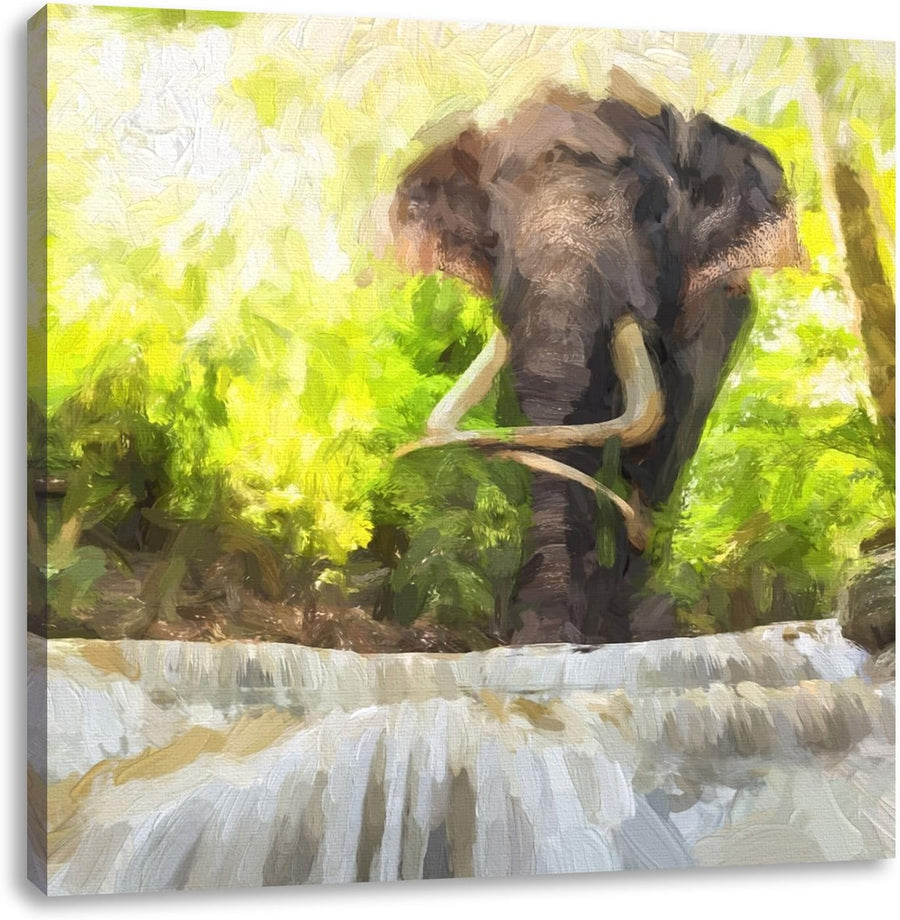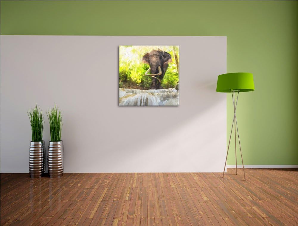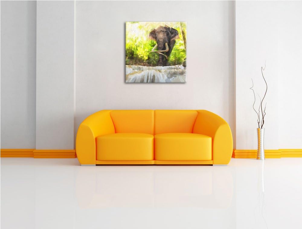 riesiger Elefant am Bach, Format: 70x70 auf Leinwand, XXL riesige Bilder fertig gerahmt mit Keilrahm