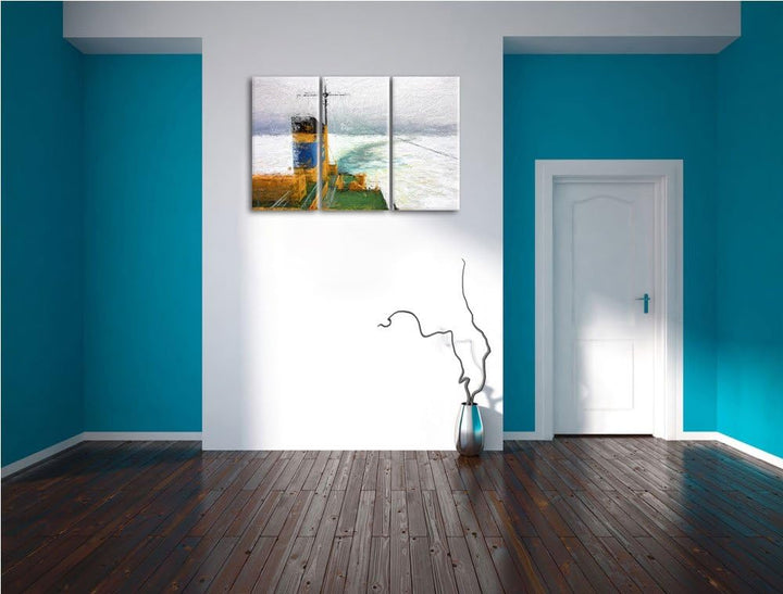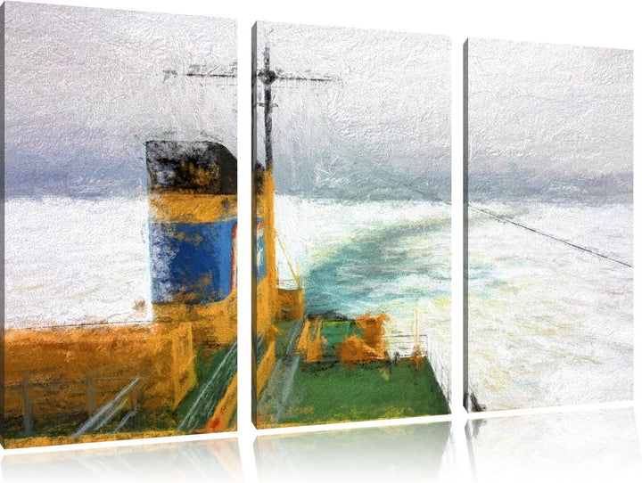 riesiges Schiff in Eisdecke NewArt 3-Teiler Leinwandbild 120x80 Bild auf Leinwand, XXL riesige Bilde
