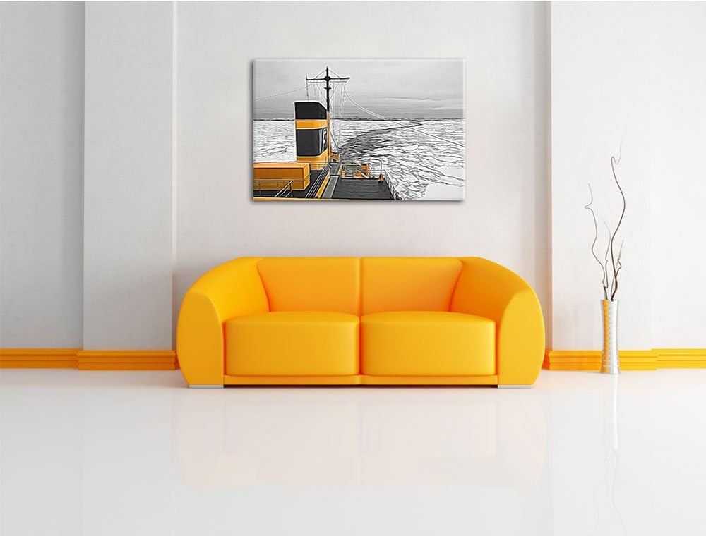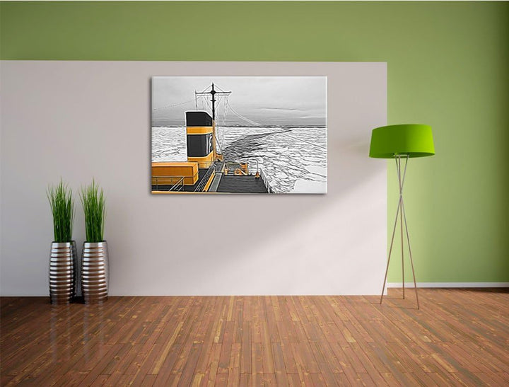 riesiges Schiff in Eisdecke schwarz/weiss Deluxe Format: 100x70 cm auf Leinwand, XXL riesige Bilder