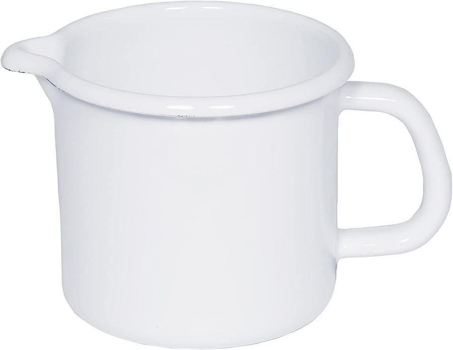 - aus klassisch weisser Emaille, in fünf Grössen erhältlich von 0,5 l bis 2 l