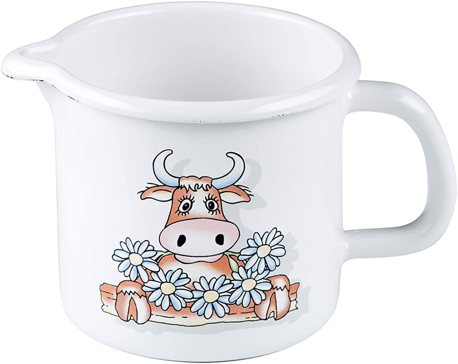 - Milchtopf um Erwärmen von Flüssigkeiten, ein Henkel, mit Ausguss (Schnabel)