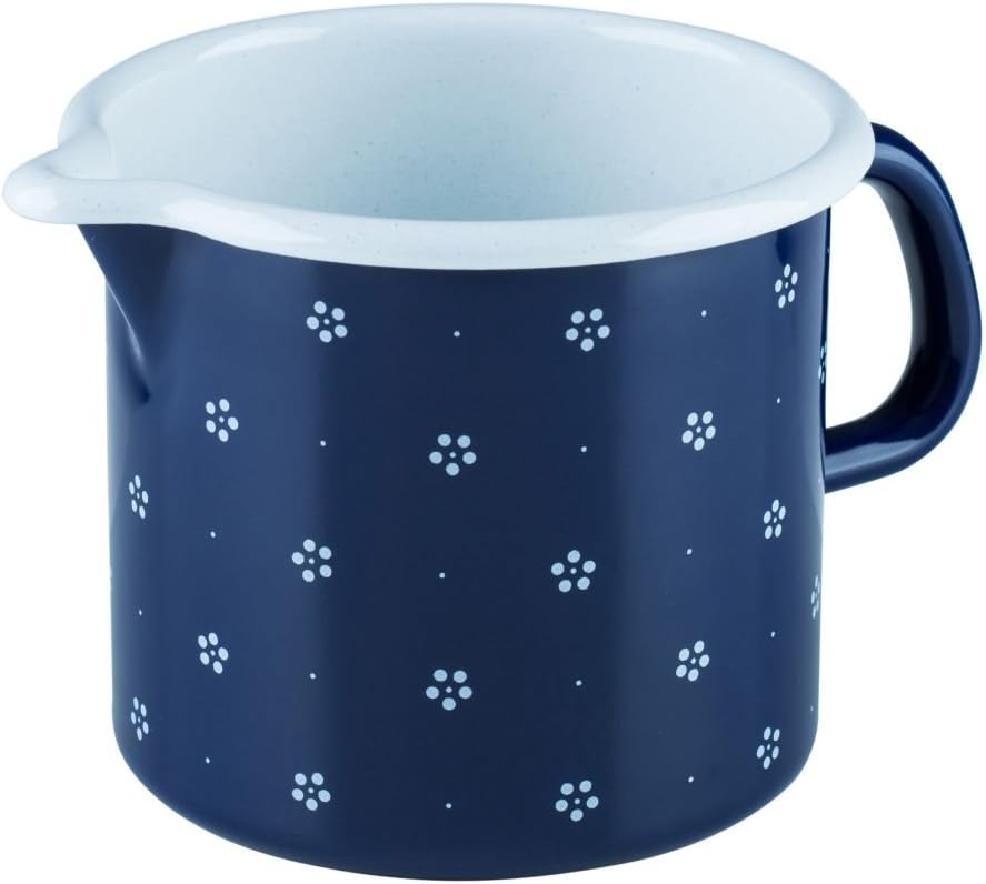 - Milchtopf um Erwärmen von Flüssigkeiten, ein Henkel, mit Ausguss (Schnabel)