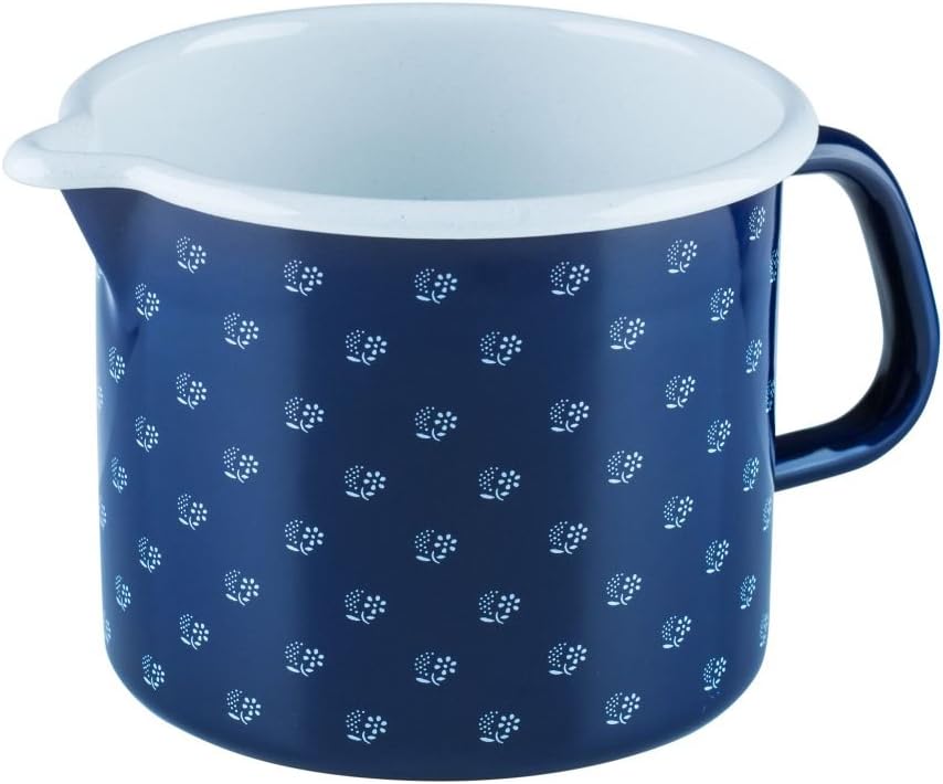 - Milchtopf um Erwärmen von Flüssigkeiten, ein Henkel, mit Ausguss (Schnabel)