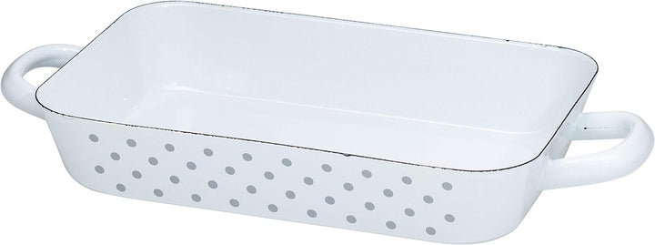 Riess, 0049-066, Bratpfanne 26/17cm, Country - PÜNKTCHEN GRAU, emaillierter Stahl, Weiss mit grauen