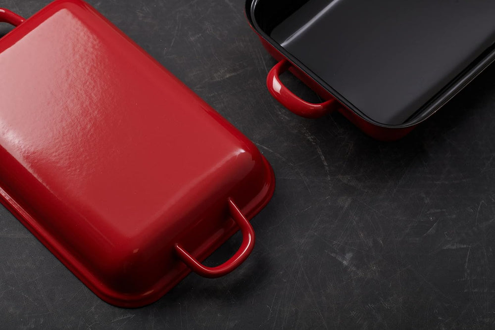 - mit zwei emaillierten Griffen für einfaches Hantieren, Innenmasse 36,5×25cm, Aussenmasse 43,5×25,6cm