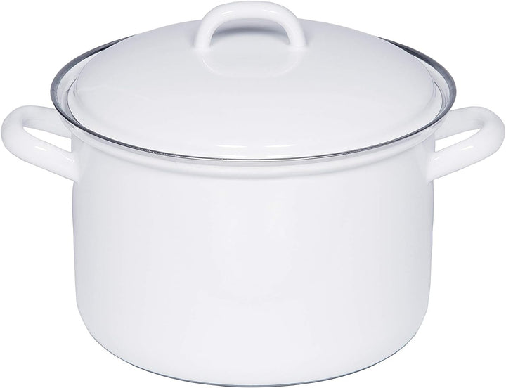- hoher Fleischtopf mit zwei Emaillegriffen, hohe Seitenwand, robuster Chromrand