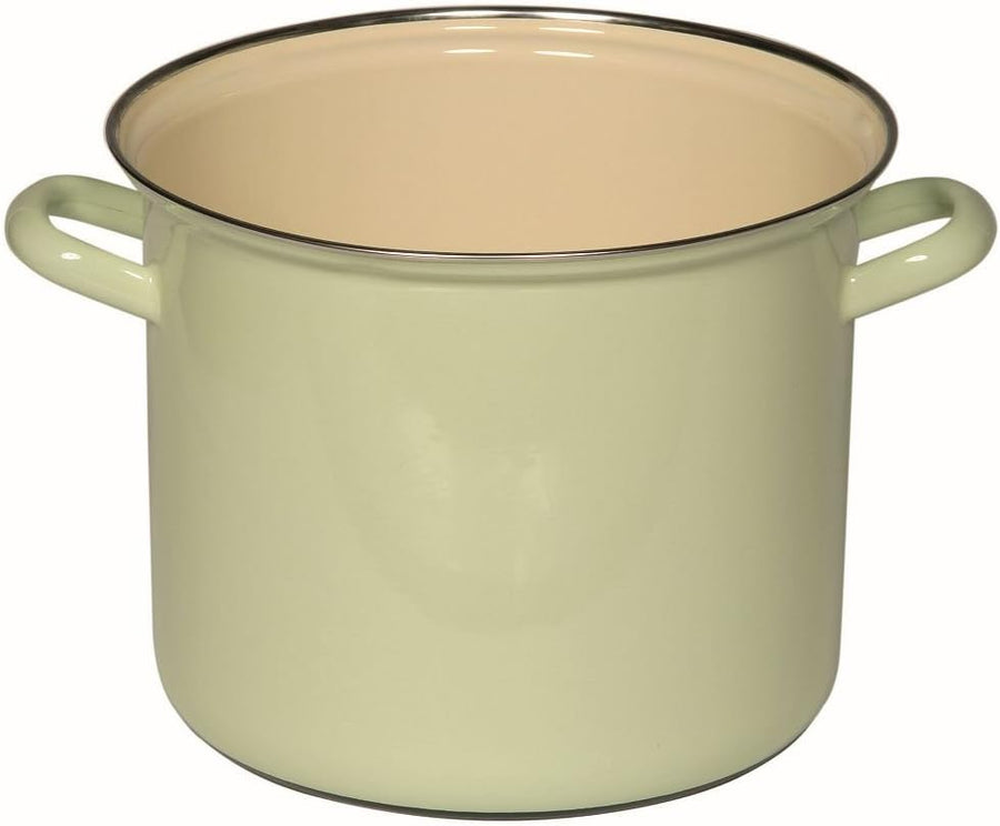 - hoher Fleischtopf mit zwei Emaillegriffen, hohe Seitenwand, robuster Chromrand, Deckel mit Griff optional
