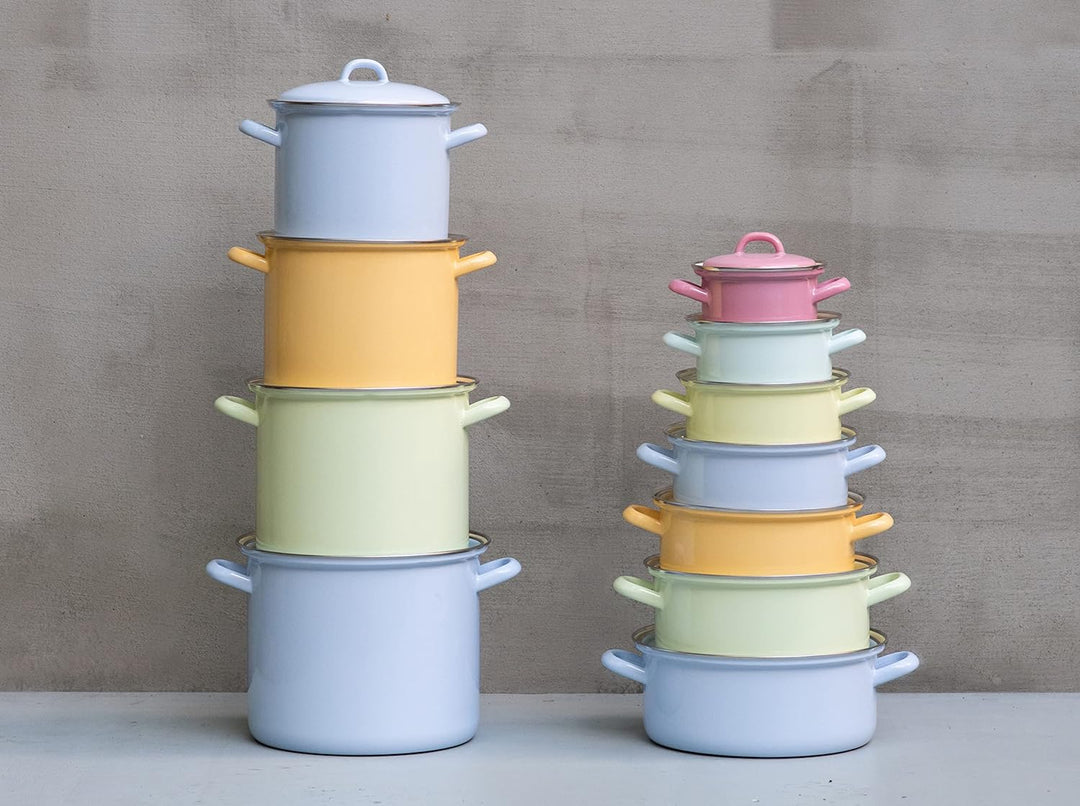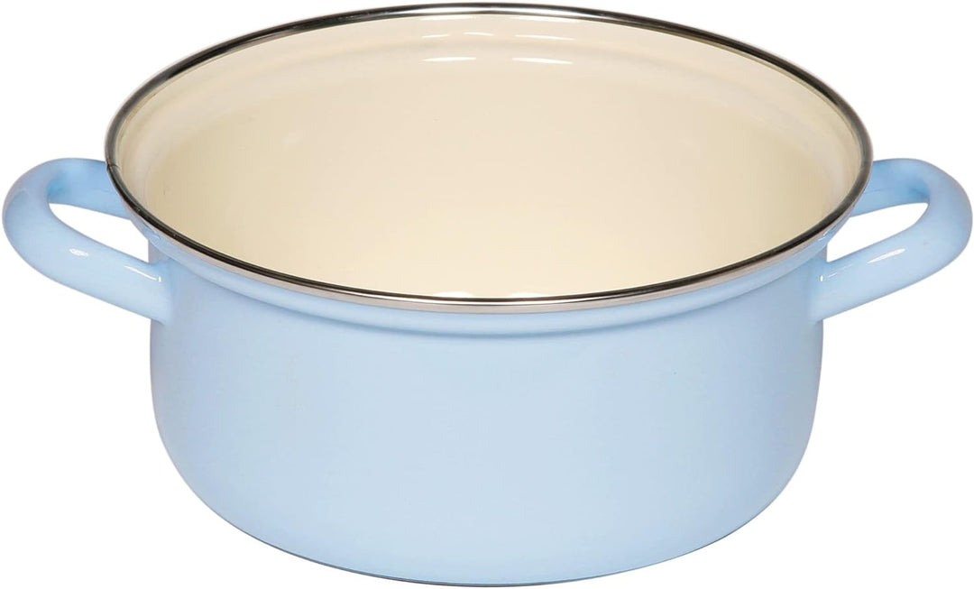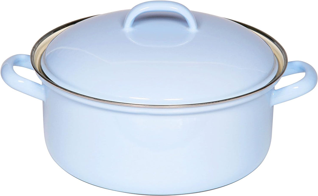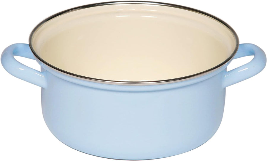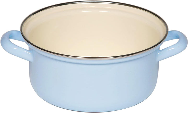 - Kasserolle mit zwei Emaillegriffen, halbhohe Seitenwand, robuster Chromrand