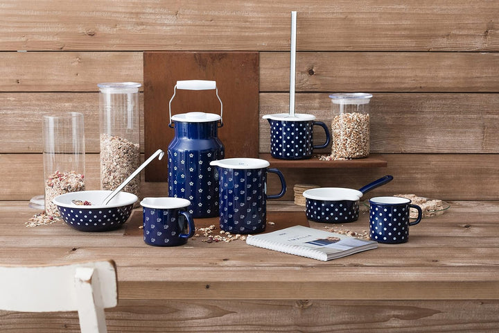 - Milchkanne aus Emaille, Träger aus Metall mit Kunststoffgriff