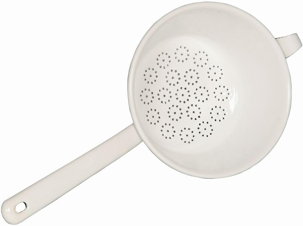 - Küchensieb aus Emaille mit Stiel, langer Stiel mit Loch zum einfachen Aufhängen