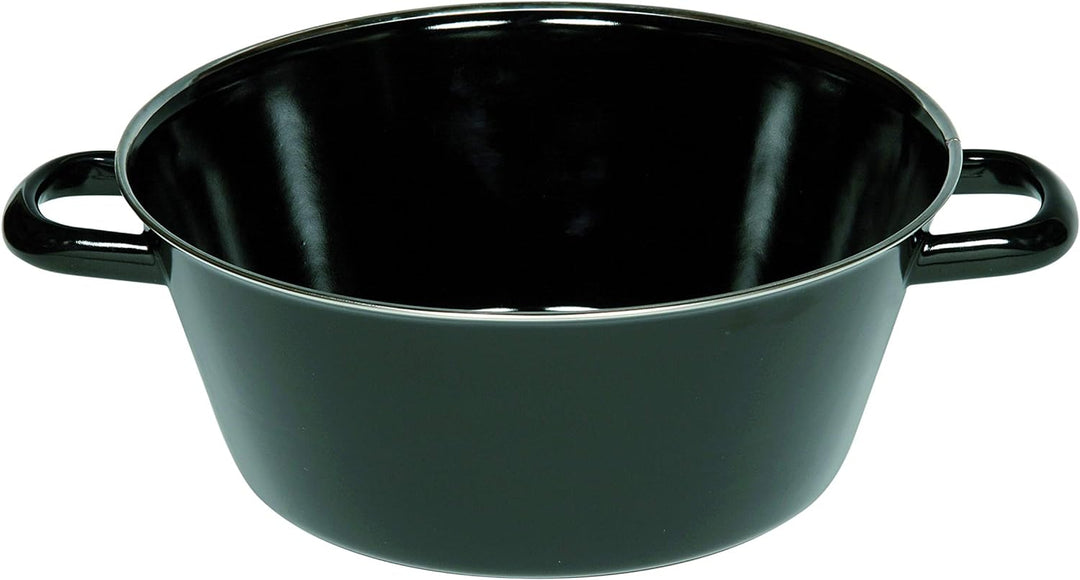 - schwarze Pfanne zum Auslassen von Schweinefett (Schmalz) , hoher Rand mit Chromrand und zwei Griffen
