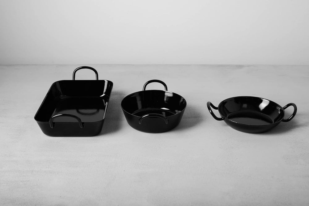 - Servierpfanne mit zwei Griffen, aus schwarzer Emaille, Durchmesser (oben innen) 20