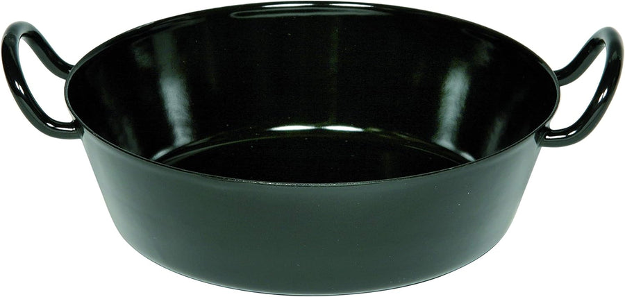 - Servierpfanne mit zwei Griffen aus schwarzer Emaille