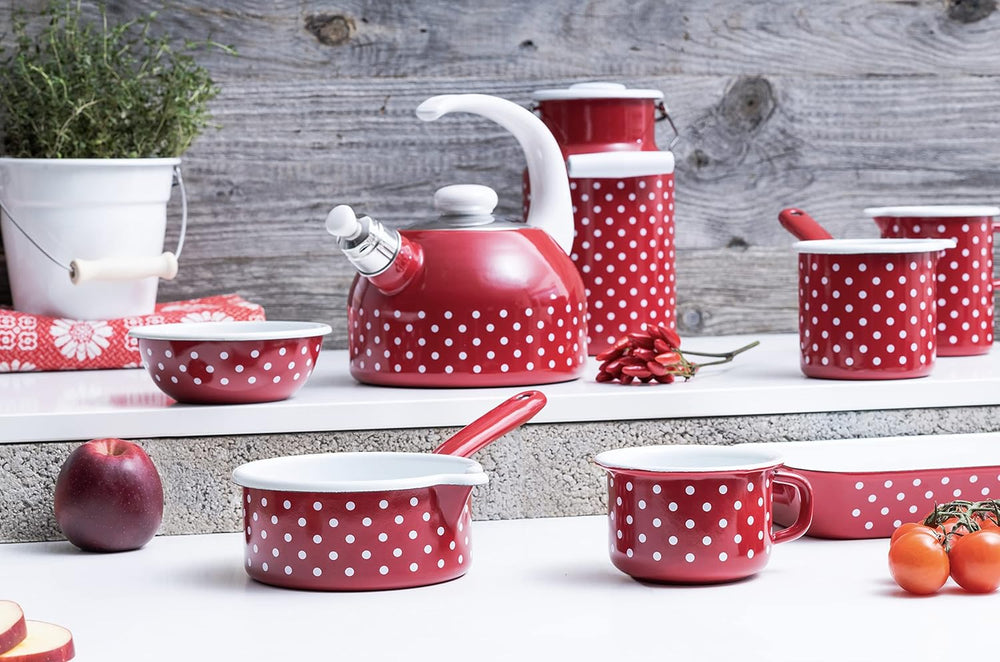 - Flötenaufsatz am Ausgiesser, mit zusätzlicher dunkelblauer Innenemaillierung für besondere Beständigkeit, Inhalt 2 Liter, Maximal Füllmenge 1,8 Liter